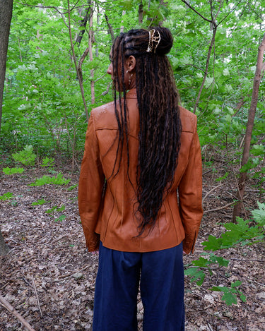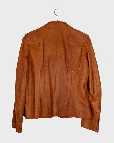 Premium preloved Madeleine brown lamb leather blazer with stitching details and light shoulder pads | S-M