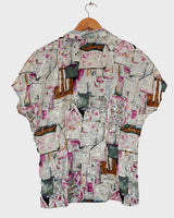 Vintage 90s crazy pattern short sleeve light shimmering blouse | S