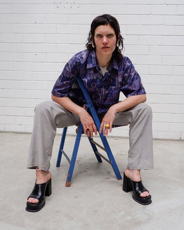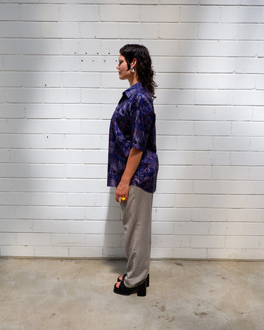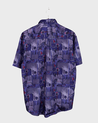 Vintage 90s purple-blue crazy pattern silk shirt | M-L