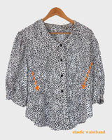 It's shimmery, it's polka-dotted, and it's totally 80s! Add a little pizzaz to your wardrobe with this classic 80s vintage blouse and its elastic waistband (last photo)