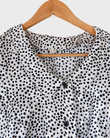 Please check all the measurements and the description text to reduce the return and be aware that this is a used blouse and not a new item so it might show some signs of wear.
