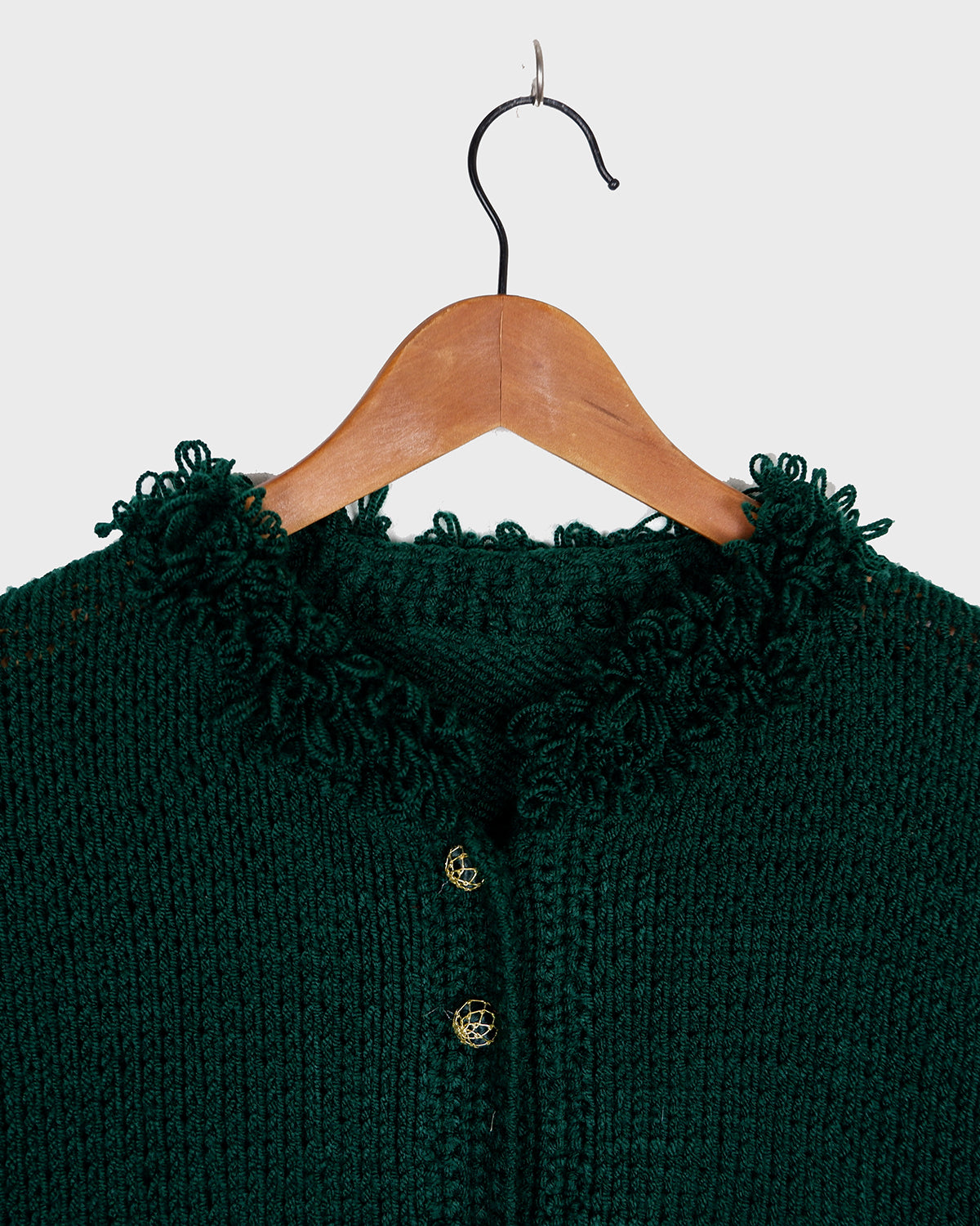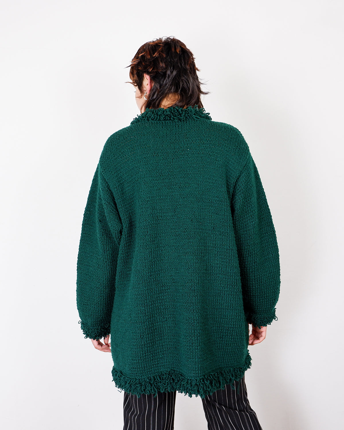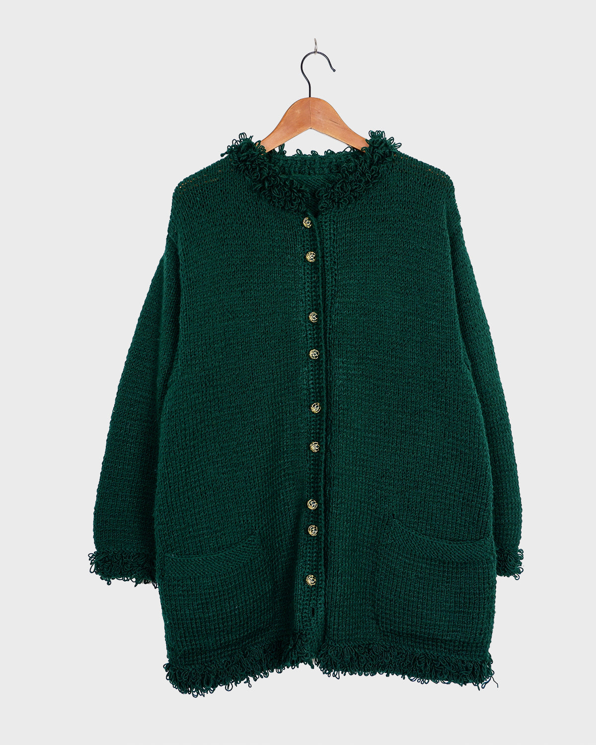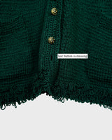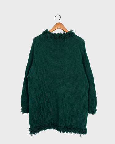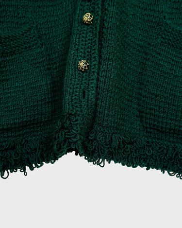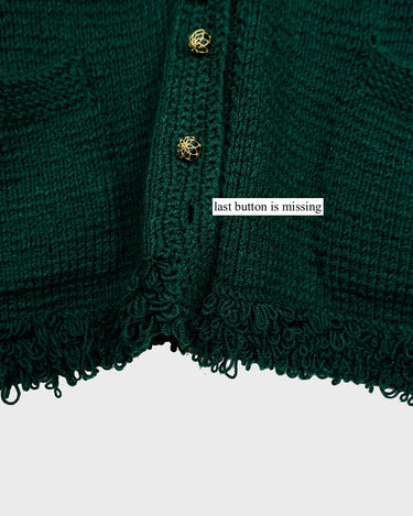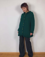 Handmade forest green long cardigan with loop trim details | S-L
