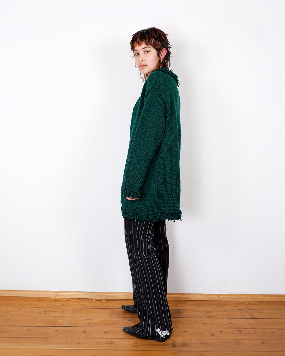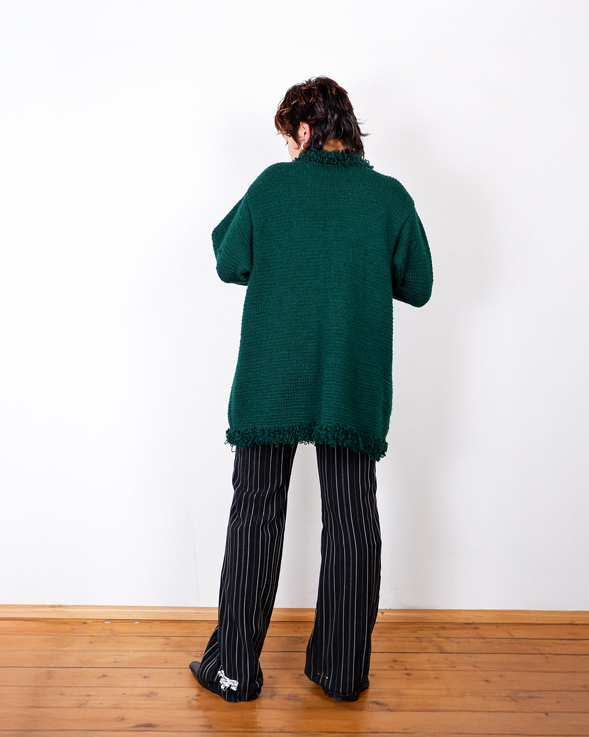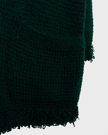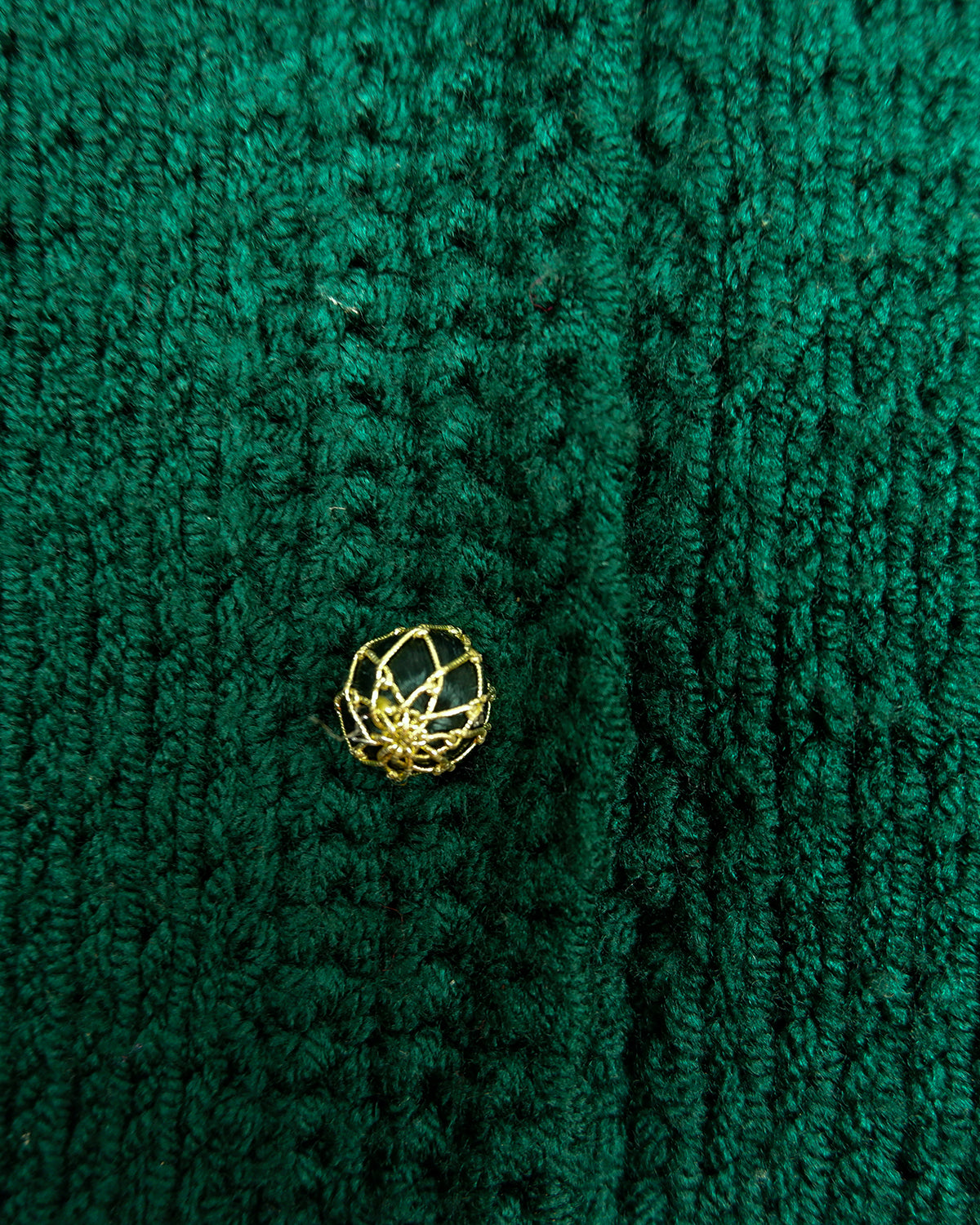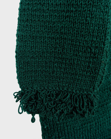 Handmade forest green long cardigan with loop trim details | S-L