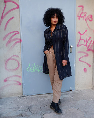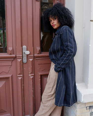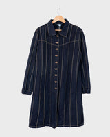 Vintage 90s navy blue long denim coat with sewing details (thin) | L - XL