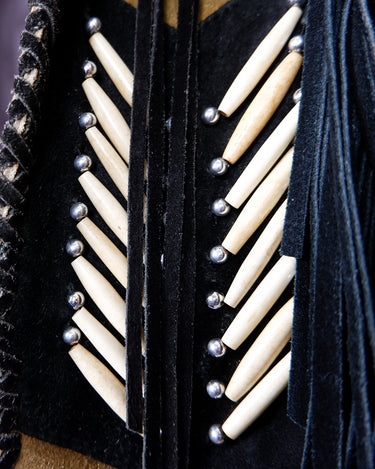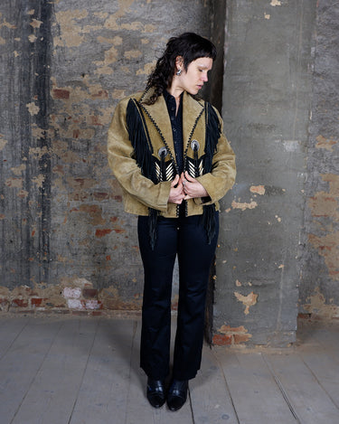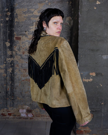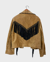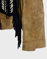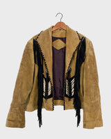 Premium Vintage 80s STARS & STRIPES brown fringe jacket with conchos (no closure) | L