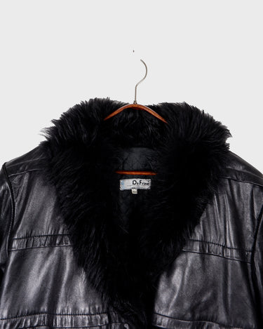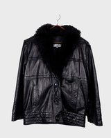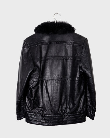 Vintage 80s black leather jacket with shearling collar | M-L