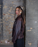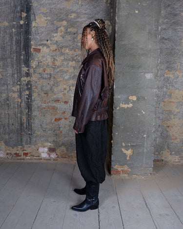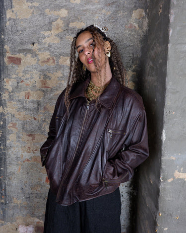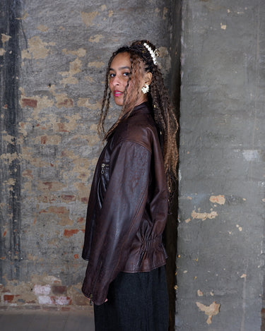 Meet your new favorite jacket: a genuine 1980s brown nappa leather piece with rich patina and authentic worn-in character. Subtle shoulder pads add classic 80s attitude, while the soft nappa leather offers a smooth, comfortable feel. A timeless vintage statement with real personality, sized M–L.
