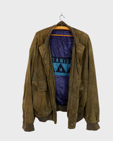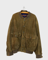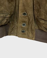 This vintage 80s suede bomber jacket rich olive green brings effortless, laid-back vibes with its relaxed fit and soft, worn-in texture. The aged suede and oversized silhouette give it a cool, lived-in feel that's perfect for everyday wear. A timeless staple for anyone who loves casual style with character.
