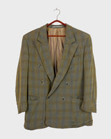 Vintage 80s olive green grandpastyle tartan / checkered pattern spring linen mix blazer with shoulder pads (thin) | L