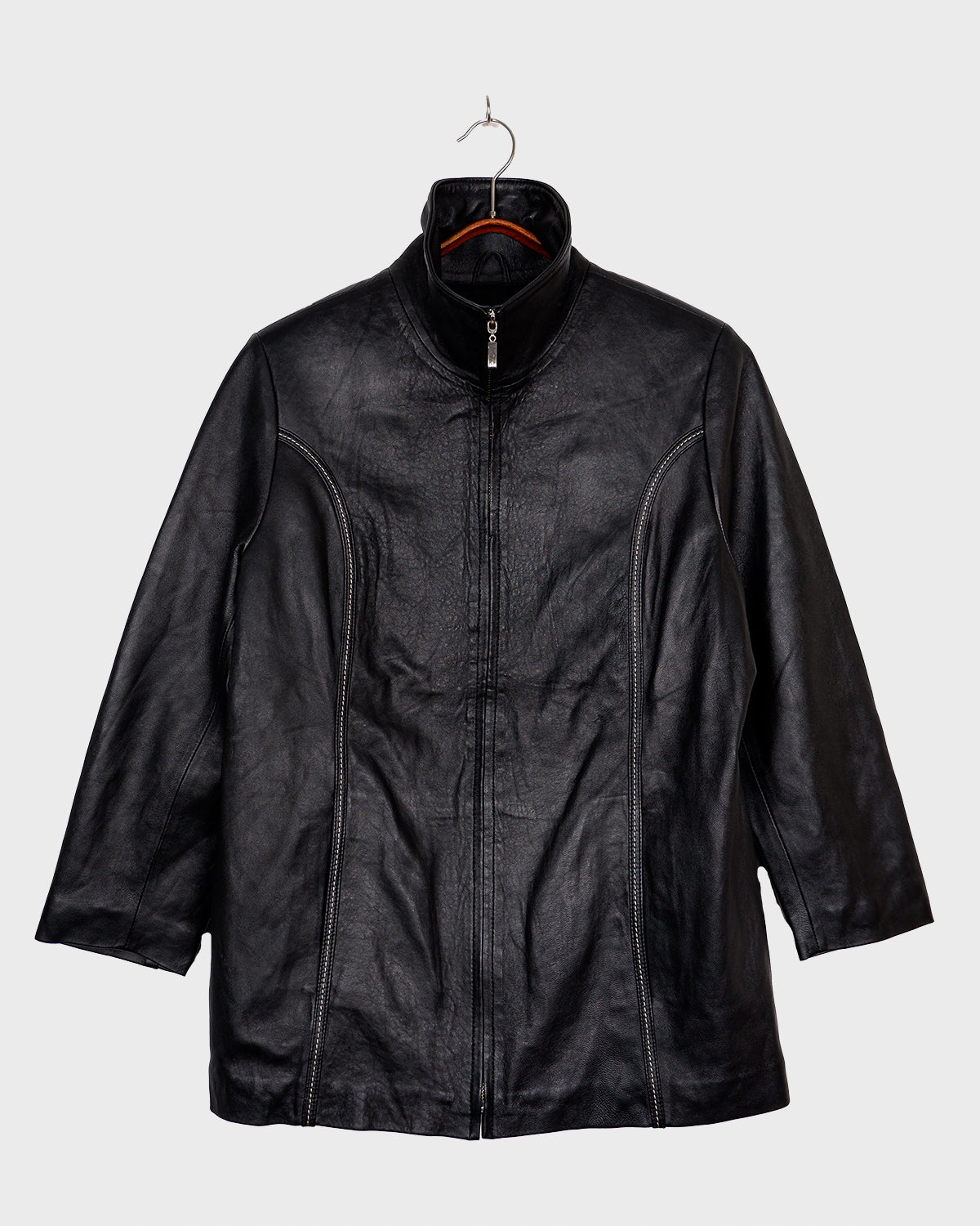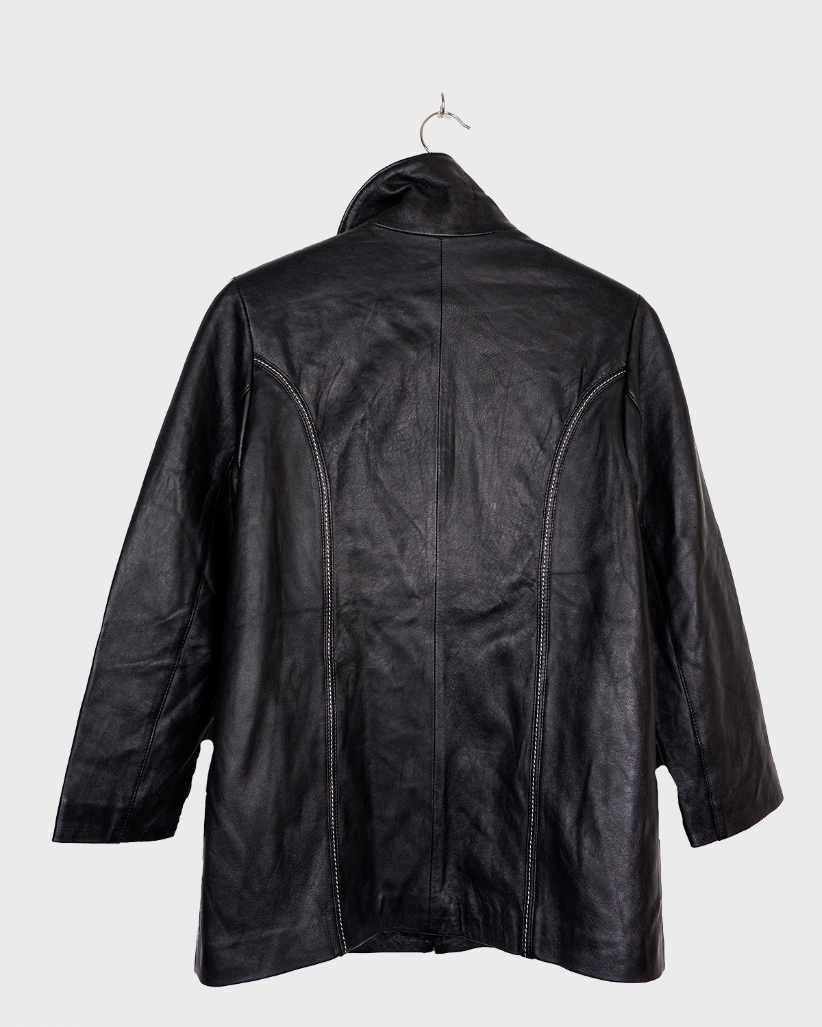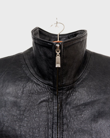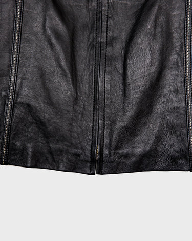 Vintage 90s high collar black leather jacket (lightweight) | M-L