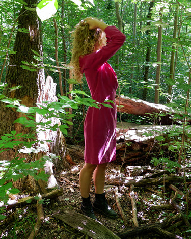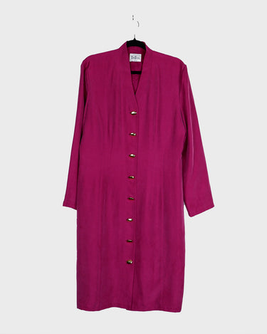 Vintage 80s pink BETTY BARCLAY silk dress with golden buttons (tailored) | L