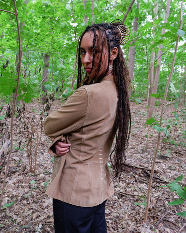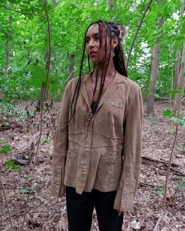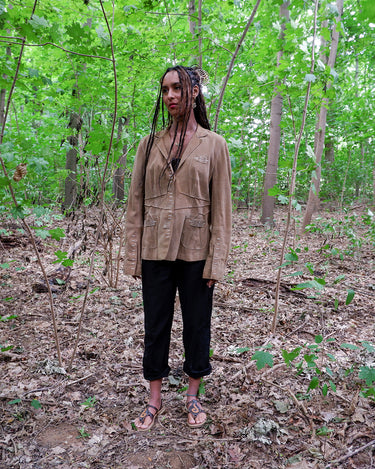 Y2k brown TAIFUN COLLECTION lightweight leather jacket with white sewing details | M-L