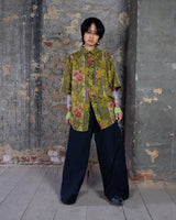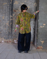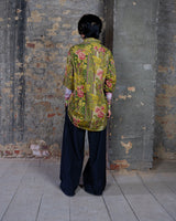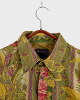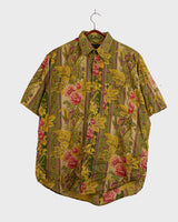 Vintage 90s shirt with softly faded yellow and green botanical floral print | L-XL