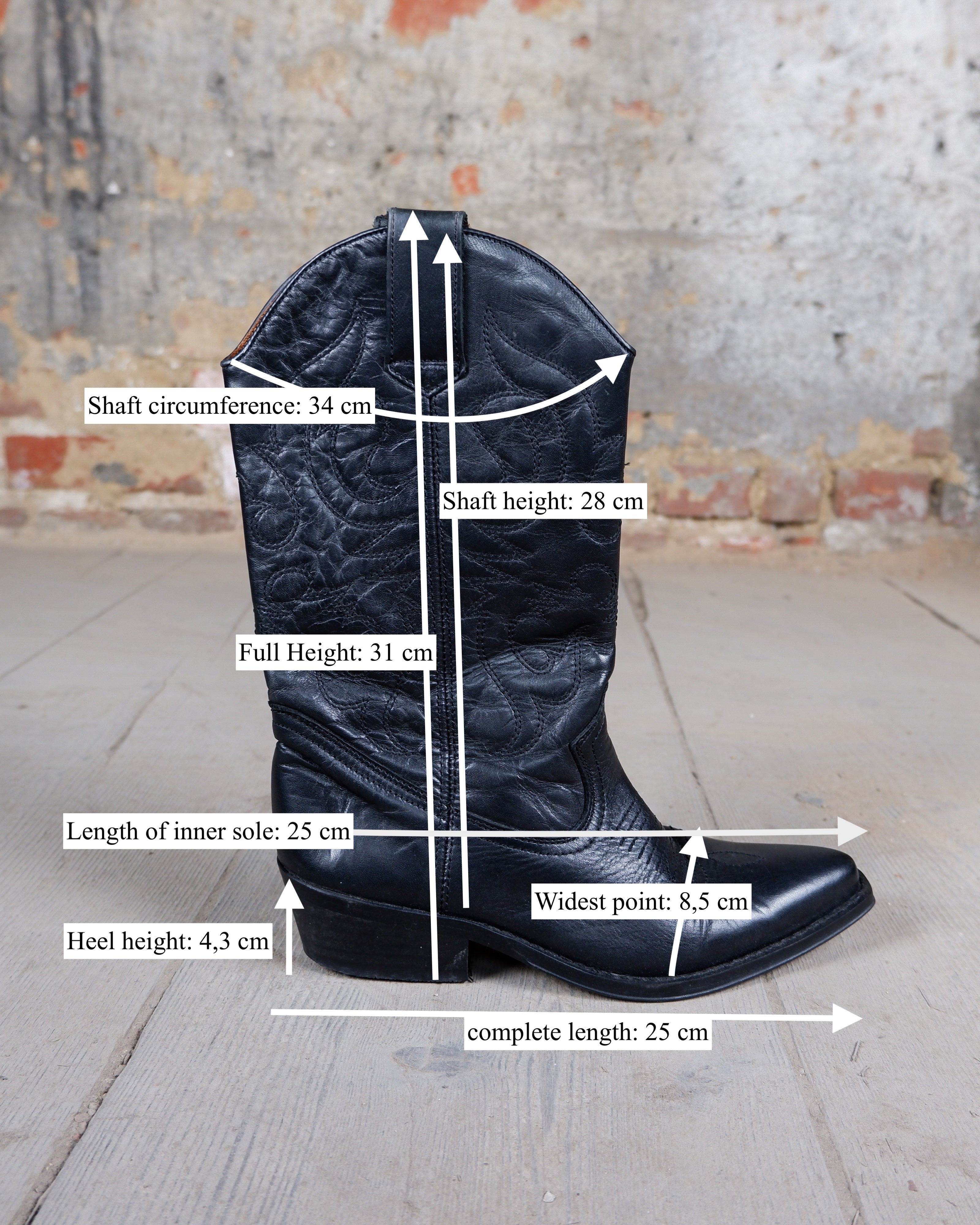(Additional note: Vintage cowboy boots are often less comfortable and run smaller and narrower than modern shoes, so be sure to check the measurements carefully before purchasing)