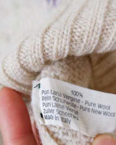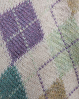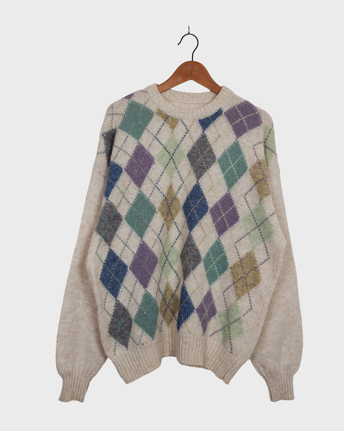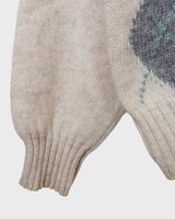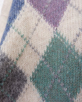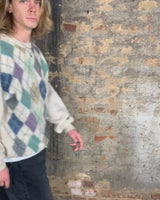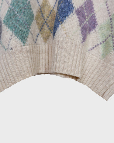 Vintage 80s 90s cream lana wool sweater with colorful argyle pattern | L-XL