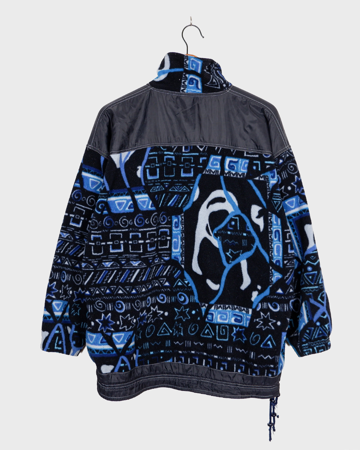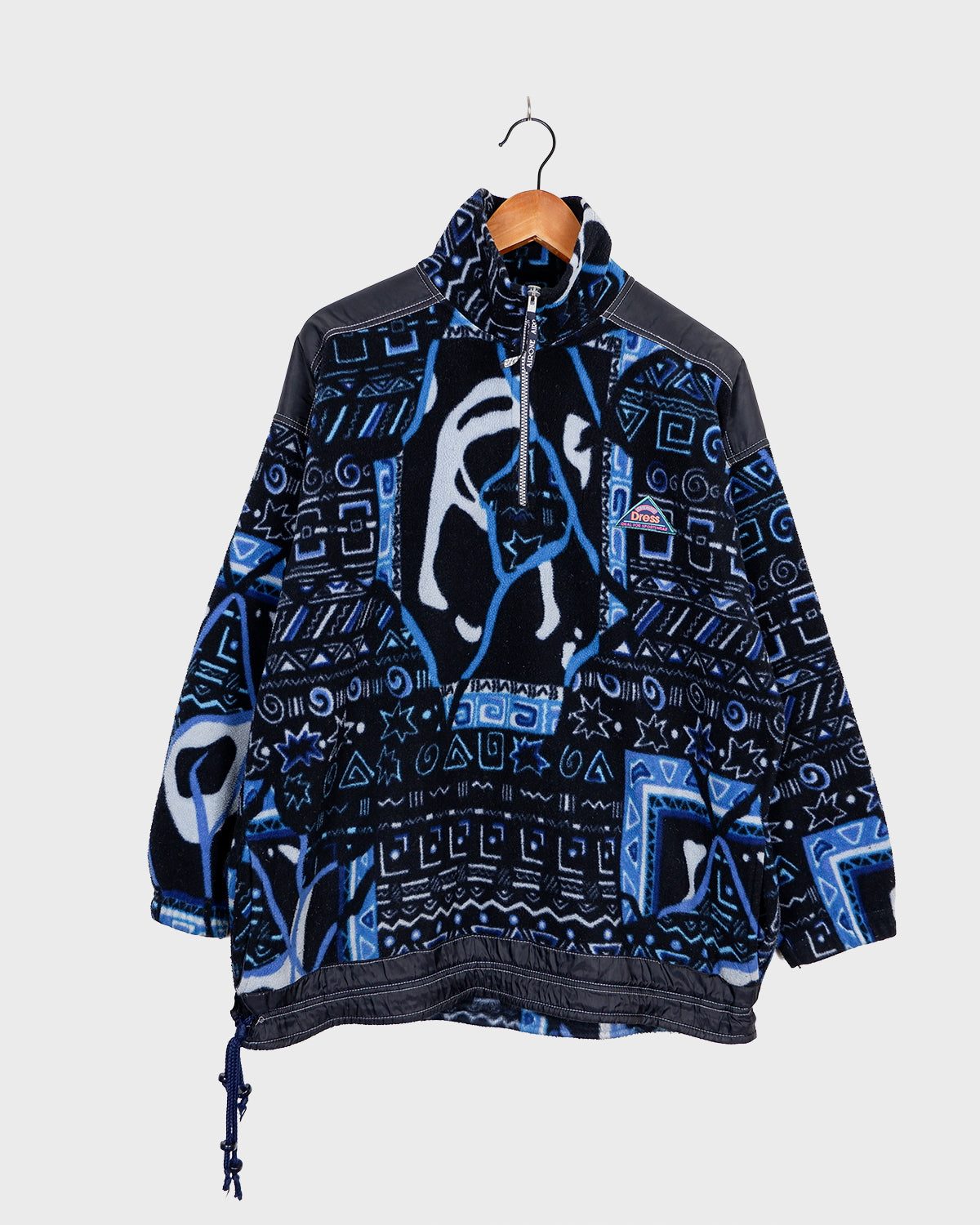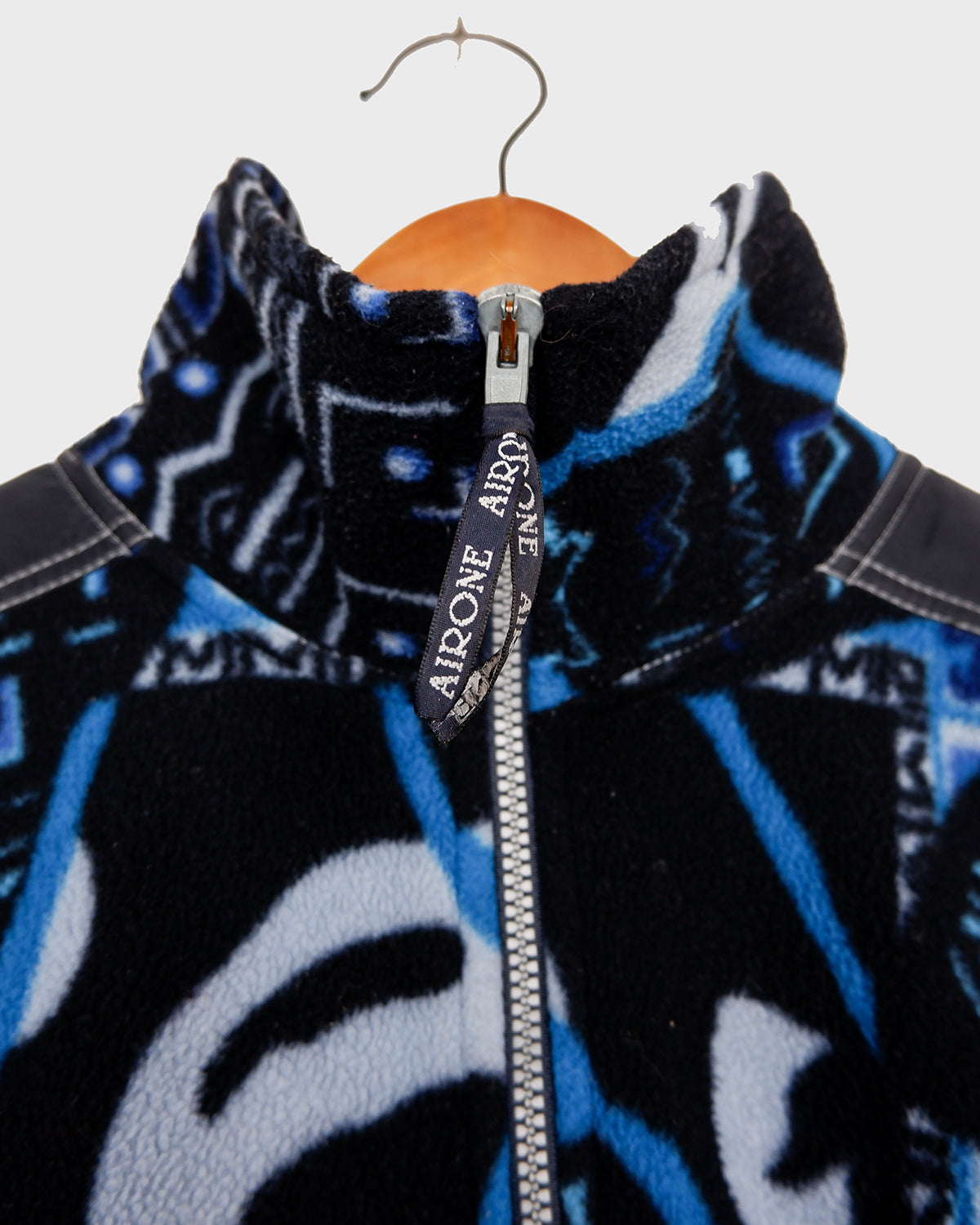 Vintage 80s AIRONE blue pattern half zip fleece (thin) | S-L