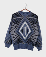 Vintage 80s blue geometric pattern sweater (thin) | M - L