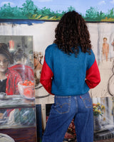 Add a pop of color to your wardrobe with this Vintage 80s red-blue-green mohair mix sweater. With a playful mix of colors and a blend of mohair, this sweater is perfect for adding a fun touch to any outfit.