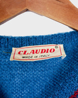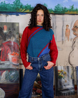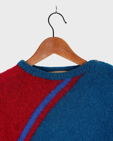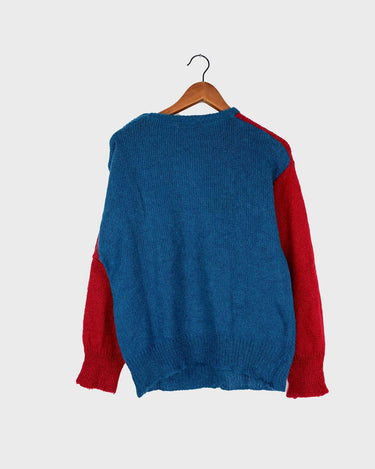Vintage 80s red-blue-green mohair mix sweater (very thin) | M - L