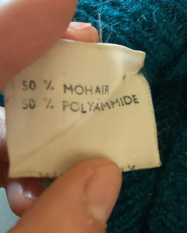 (Additonal note: This sweater might feel a bit scratchy due to the high proportion of the premium material mohair. If you're to sensitive, I would highly recommed to wear sth. underneath The middle part and the back of this sweater is more greenish than it looks on the photos. Have a closer look at the last photo for a color reference by daylight)