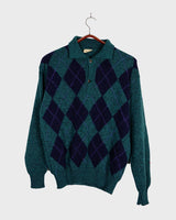 Stay cozy and classy in this vintage 90s green argyle sweater. Perfect for sizes M-L, this sweater features a classic argyle pattern and a pop of playful green