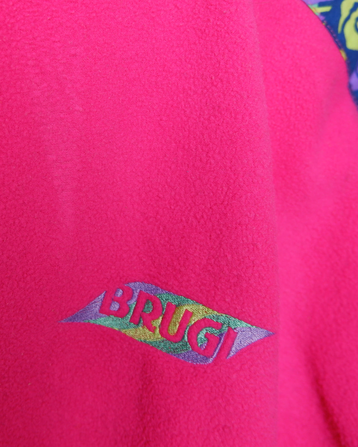 This 80s BRUGI fleece totally delivers with its punchy pink color and playful geometric patterns on the shoulders and sleeves. It’s lightweight, comfy and perfect for layering, featuring a zip-up front plus a front and two side pockets. A vintage piece that slays with pure vintage attitude!