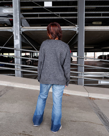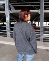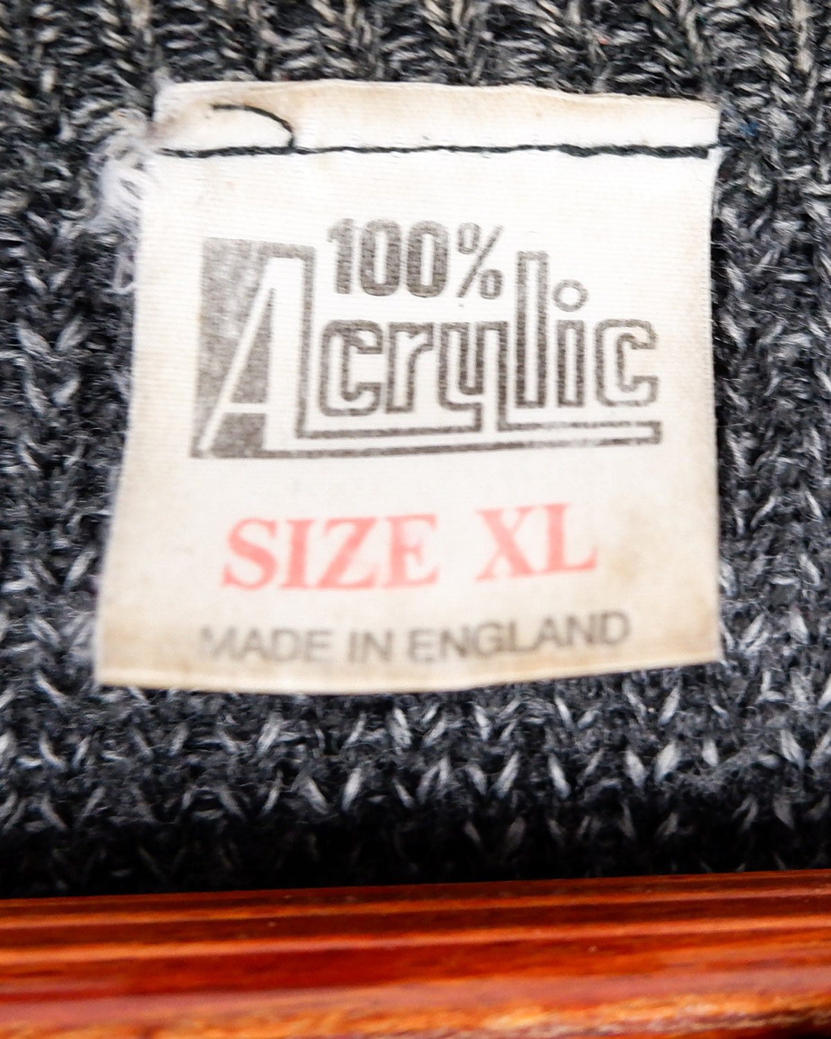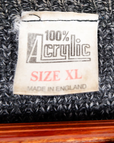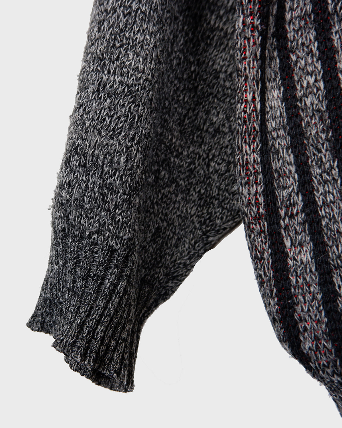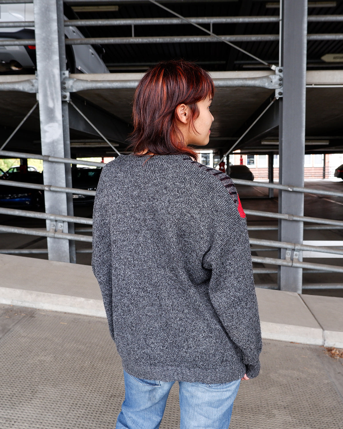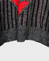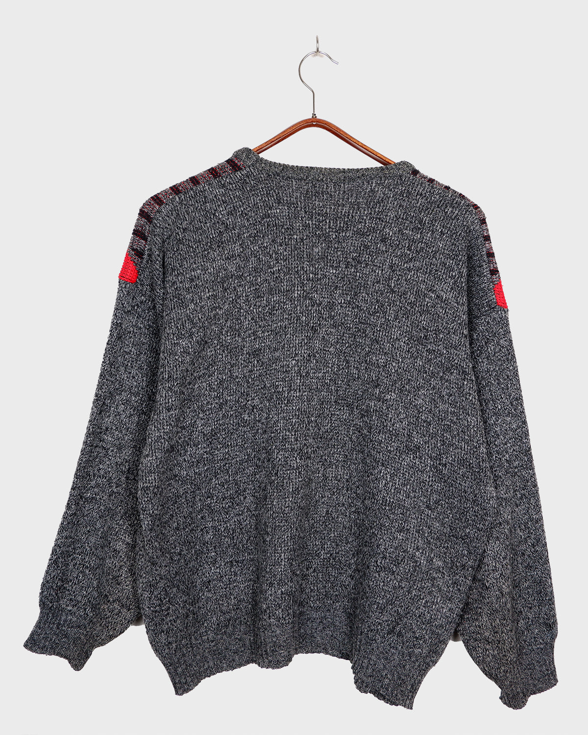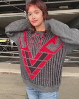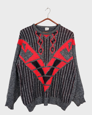 Vintage 80s grey sweater with red geometric pattern | M-L