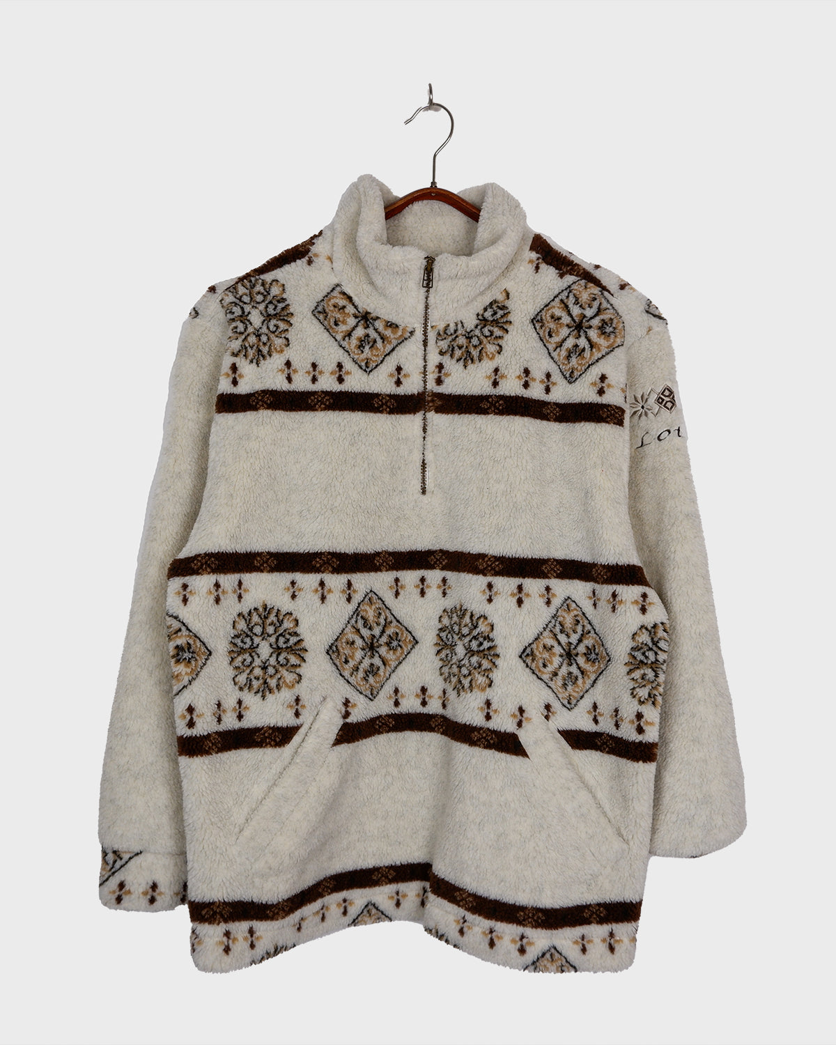 Vintage 80s MODO designed by LOTTO white/cream half zip sweater with brown nordic pattern | L