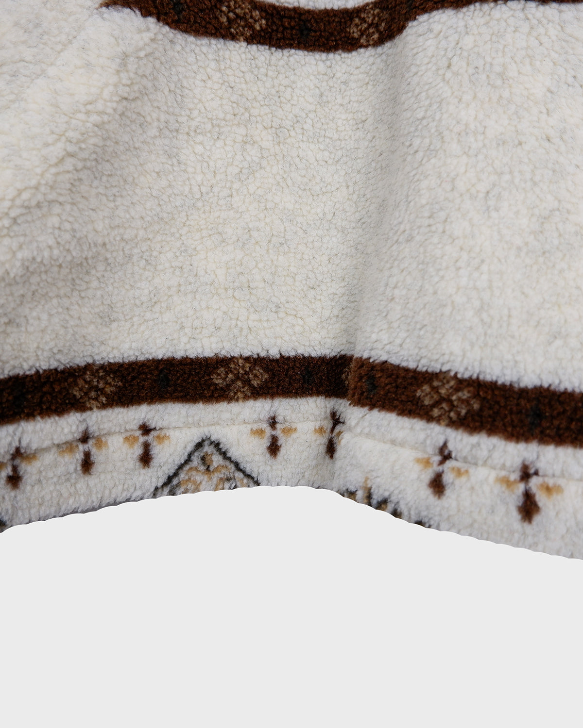 This MODO designed by LOTTO fleece brings cozy vintage vibes with its white/cream color and brown Nordic-inspired pattern. Soft and warm, it features a zip-up front and two side pockets for that perfect mix of comfort and practicality. A laid-back piece that delivers timeless alpine vibes.