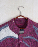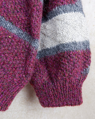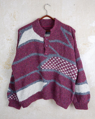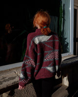 Vintage 80s pink thick wool sweater with geometric pattern | XL-XXL