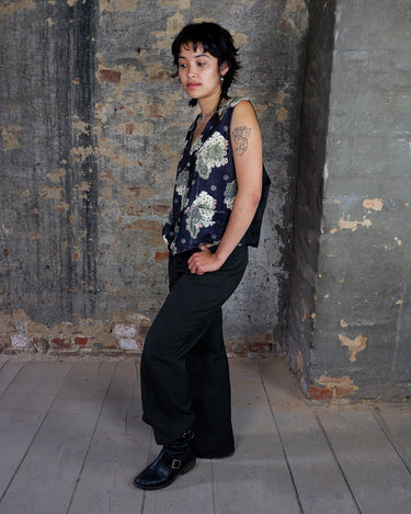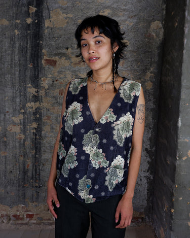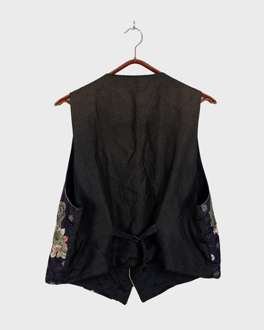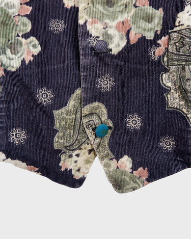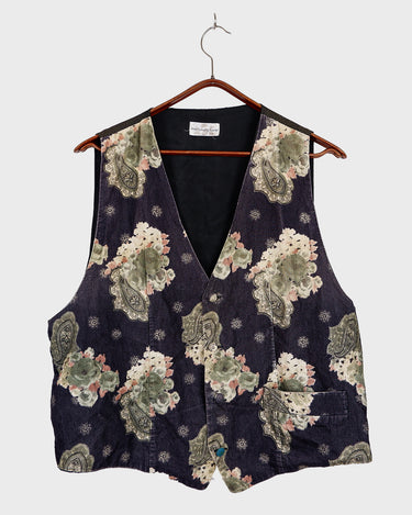 Vintage 90s Anne Surkamp Kramer navy blue (almost purple) corduroy vest with floral pattern | L-XL