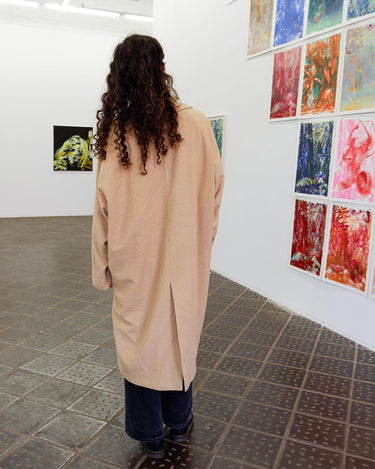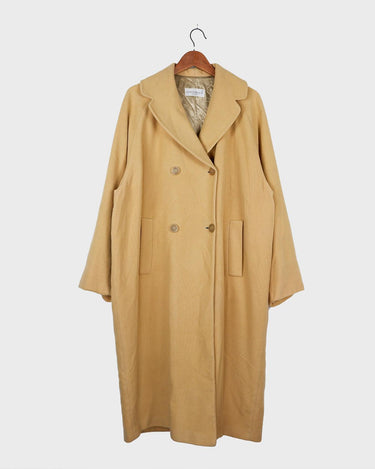 Premium Vintage 80s yellow cashmere wool mix two rows buttons long oversized coat | L - XL
