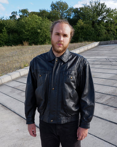 Vintage 80s 90s black BERTO LUCCI bomber leather jacket | L-XL