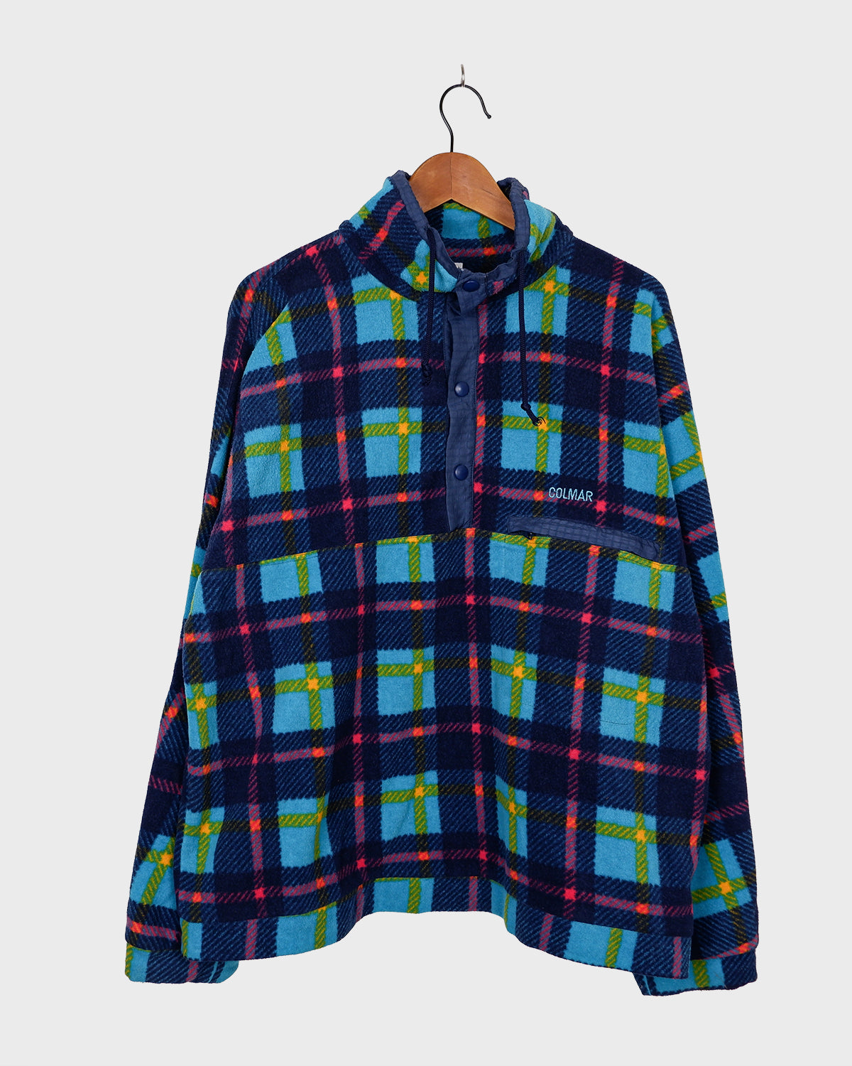 Vintage Colmar 80s/90s Half Zip Fleece – Multicolor Plaid (thin) | L
