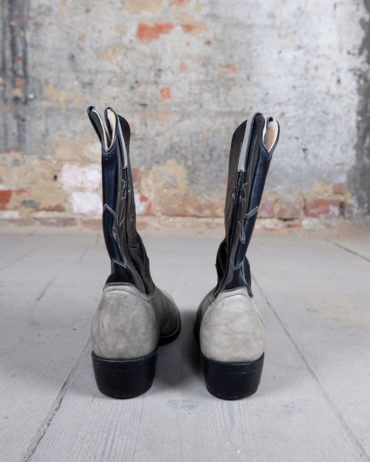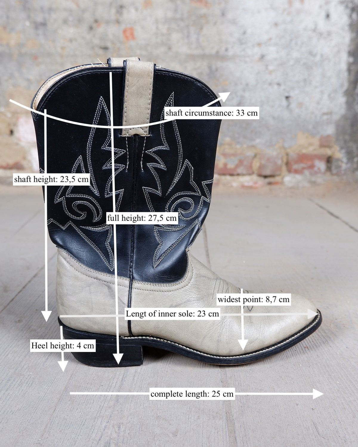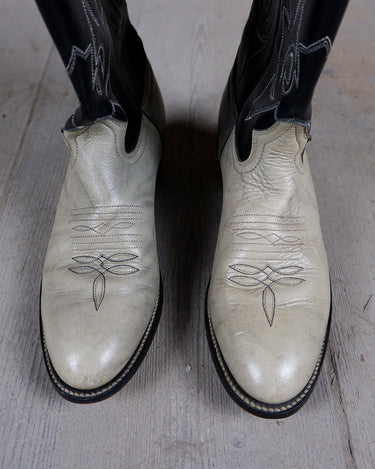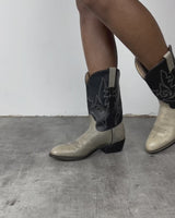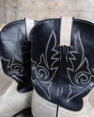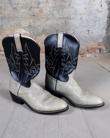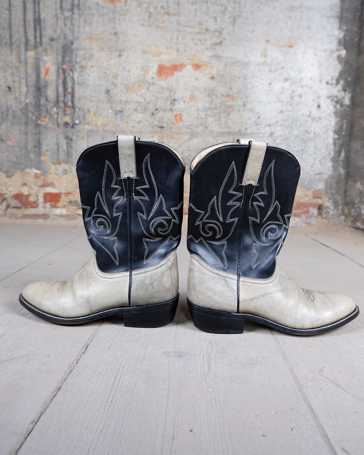Vintage 80s 90s JUSTIN black and cream cowboy boots with flame embroidery (suitable for narrow feet) | 36-37