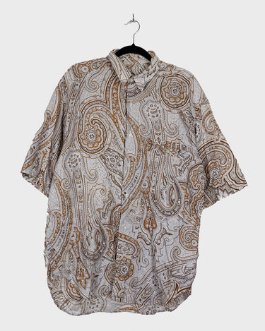 Premium Vintage 90s Pal Zileri italian luxury brand brown and gold paisley shirt | L-XL