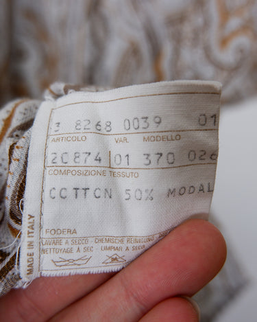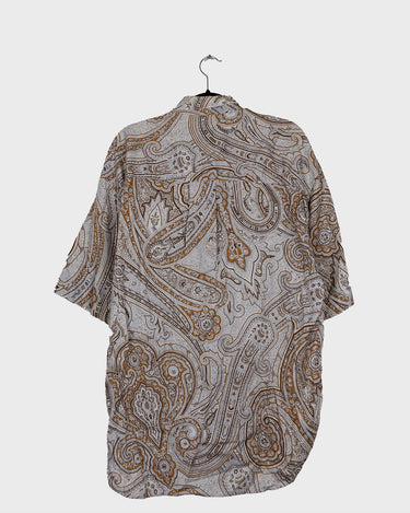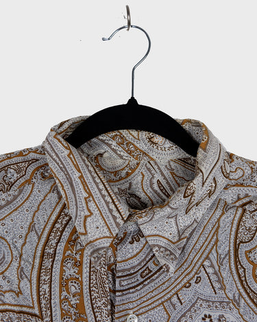 This vintage 90s Pal Zileri shirt, made in Italy, brings true ‘90s flair with its bold paisley pattern in deep gold and brown tones. The slightly stiff collar and left chest pocket add structure to the otherwise laid-back, flowing silhouette. It’s the kind of piece that feels effortless but looks thoughtfully styled! Perfect for anyone chasing that smooth, artistic vintage vibe.