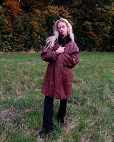 Timeless and effortlessly chic – this vintage women’s leather coat is made from lightweight genuine leather in a rich brown tone. Its relaxed silhouette flatters every figure, while the plush faux fur collar adds a hint of luxe. Perfect for layering through the seasons.