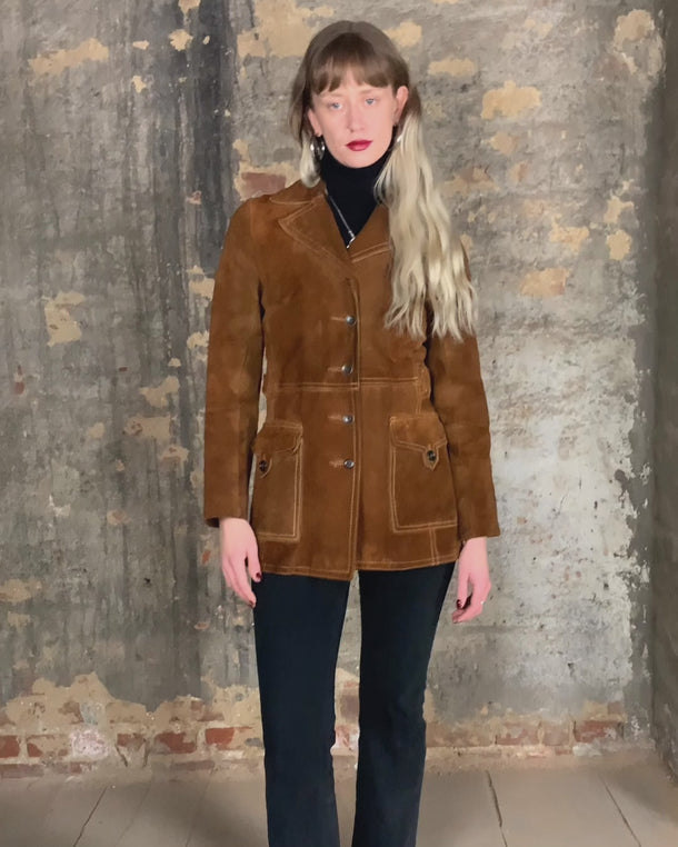 Vintage 70s 80s OPERA brown suede leather jacket | XS