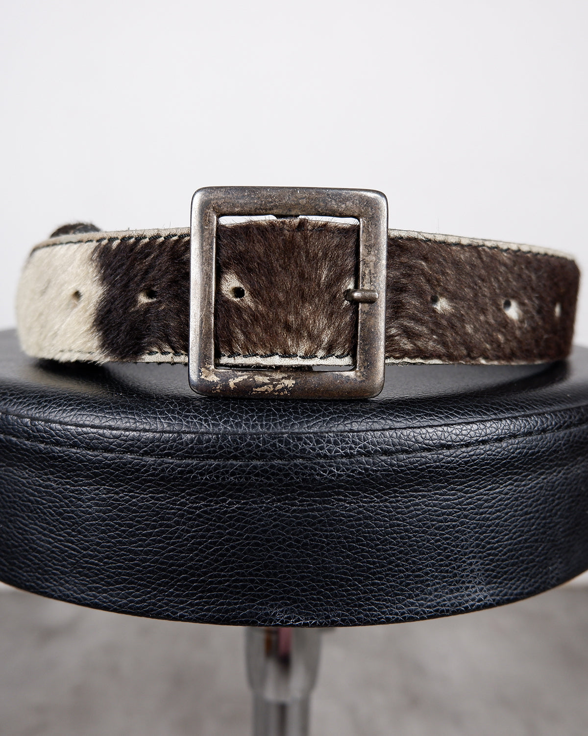 Vintage 80s real cowhide leather belt - brown and white | XS