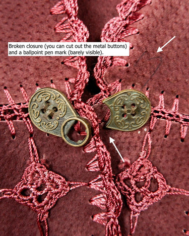 7 / 10 (residue of glue at the inside, broken closure, ballpoint pen mark near the metal buttons and signs of wear at the lower left side