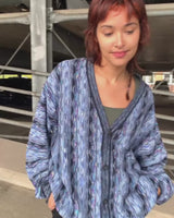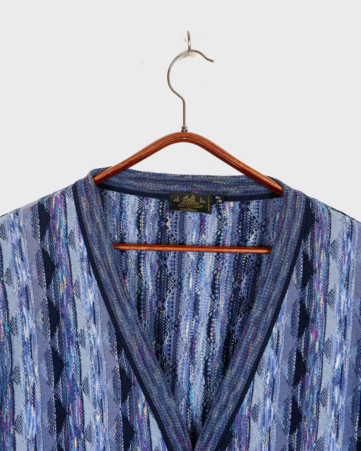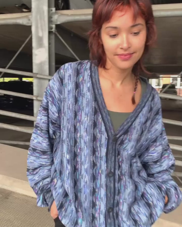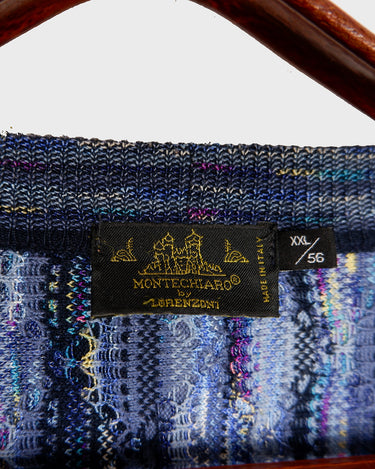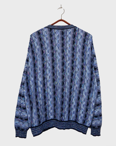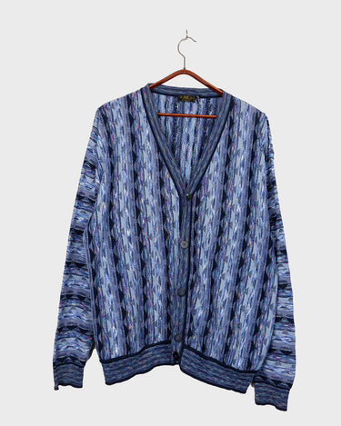 Vintage 80s MONTECHIARO by LORENZONI blue cardigan coogi style | L-XXL