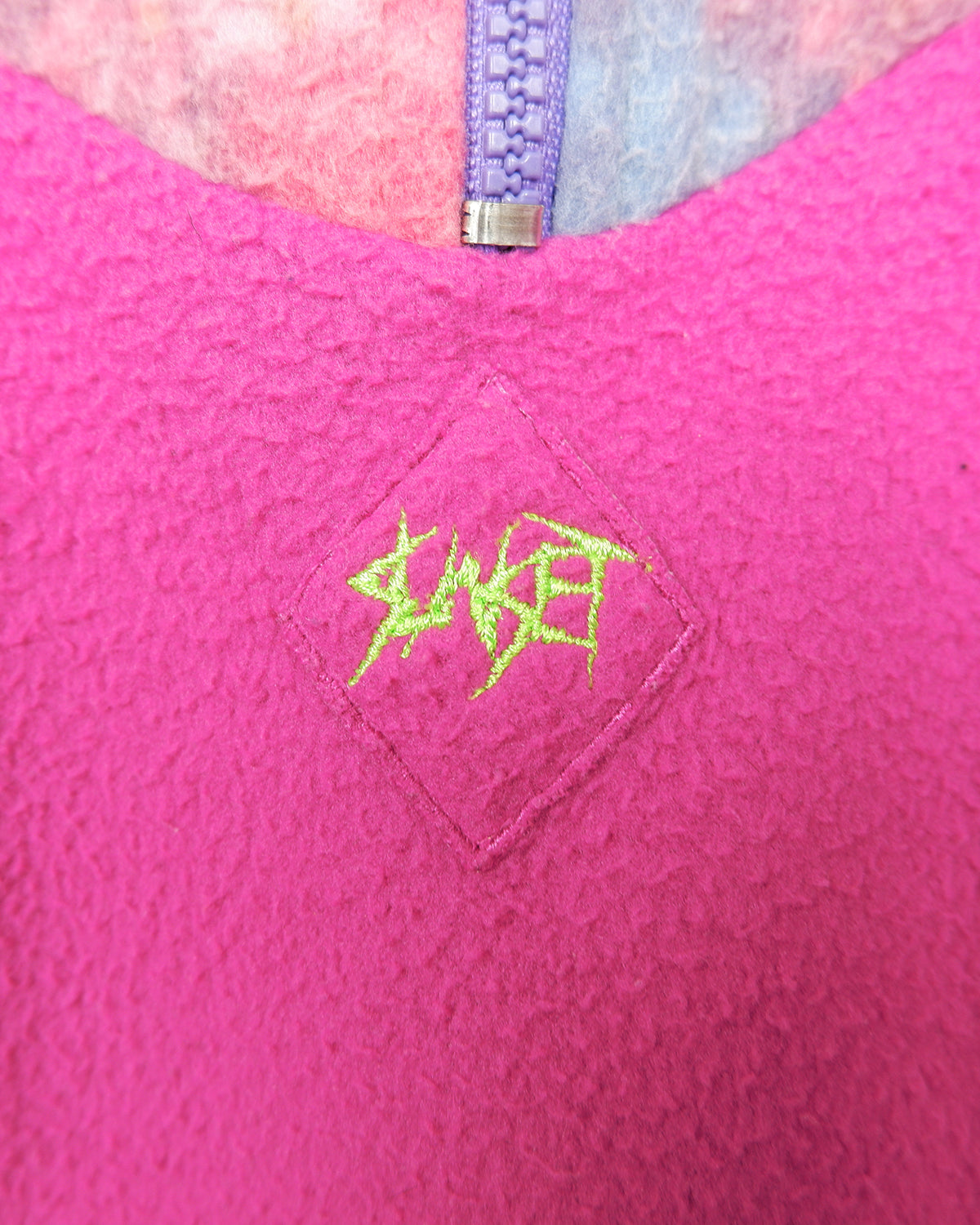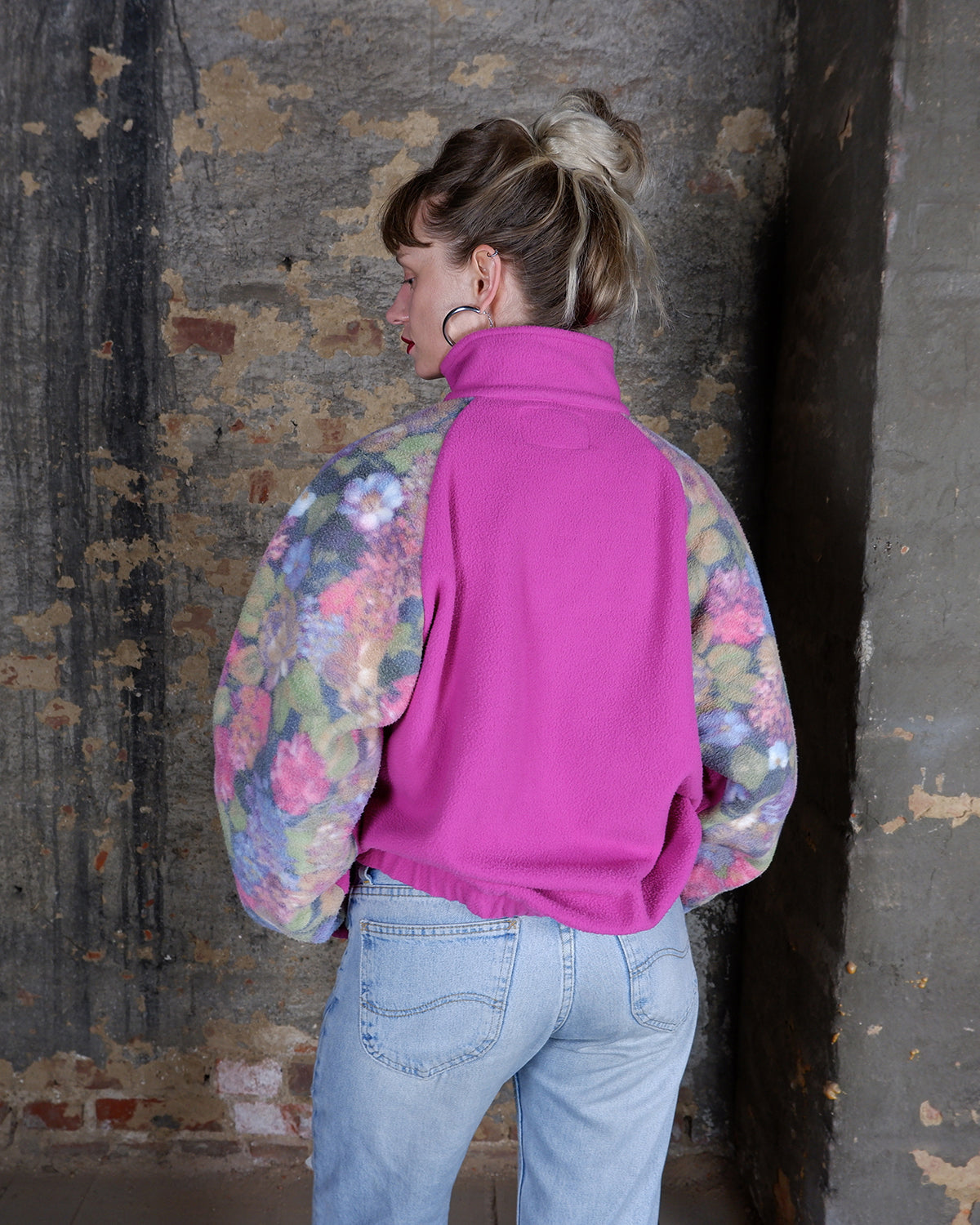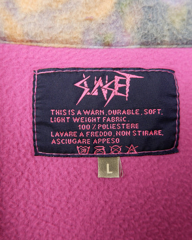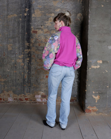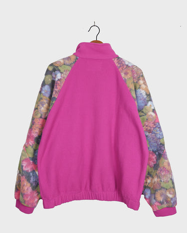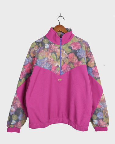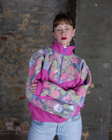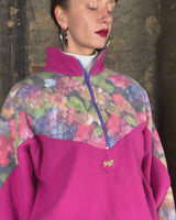 Vintage 80s 90s hot pink half zip fleece with floral pattern | M-L