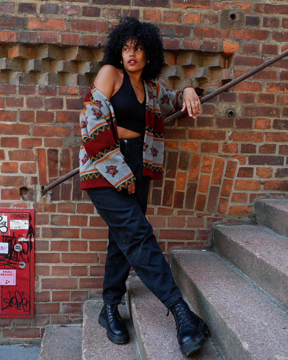 All clothing are measured flat. We also make a size recommendation, as vintage and secondhand fashion can vary greatly in size. The size recommendation is always from the perspective of a female body S / M and 1,60 m. Feel free and contact us, if you have further questions!