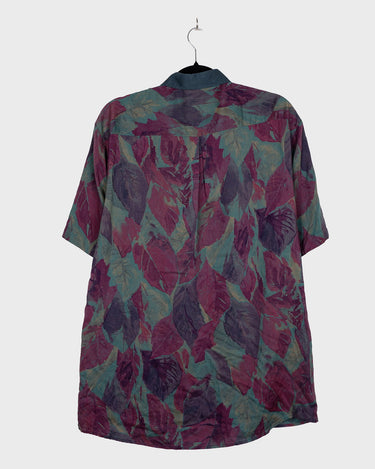 Vintage 80s leaf print polo shirt | M-L