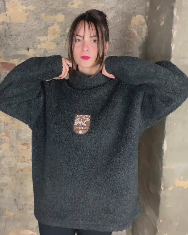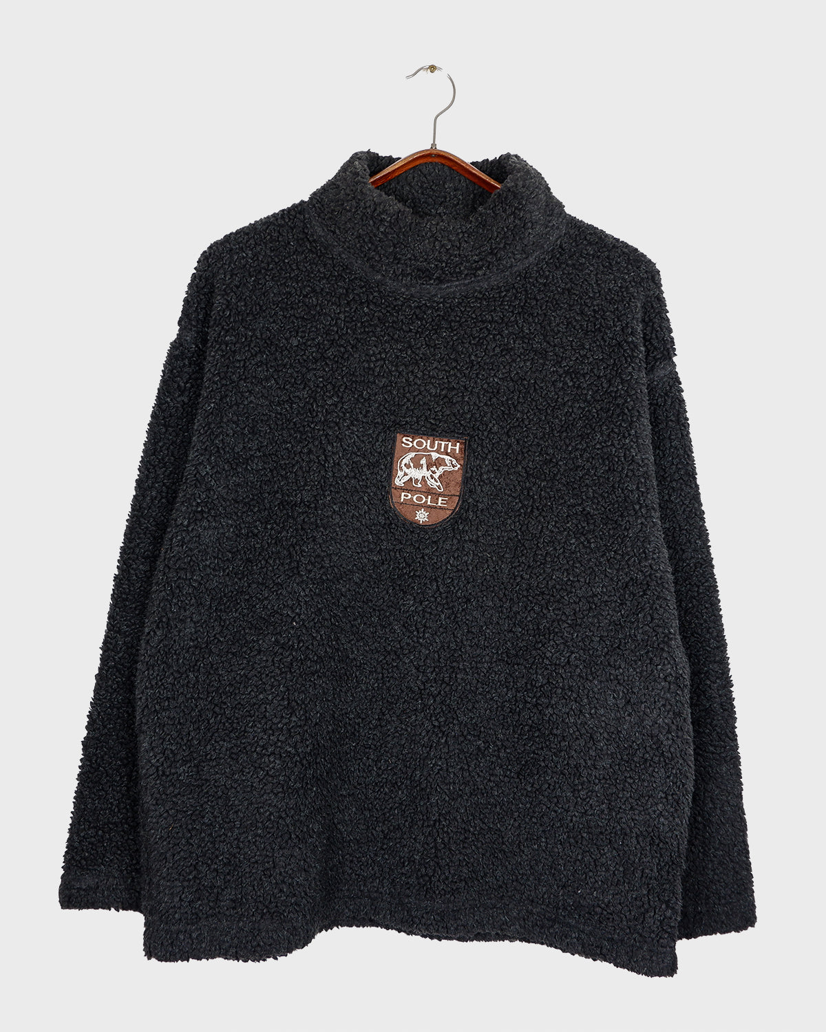 Vintage 90s SOUTH POLE dark grey (almost like black) turtlekneck fleece / teddy sweater | M-L