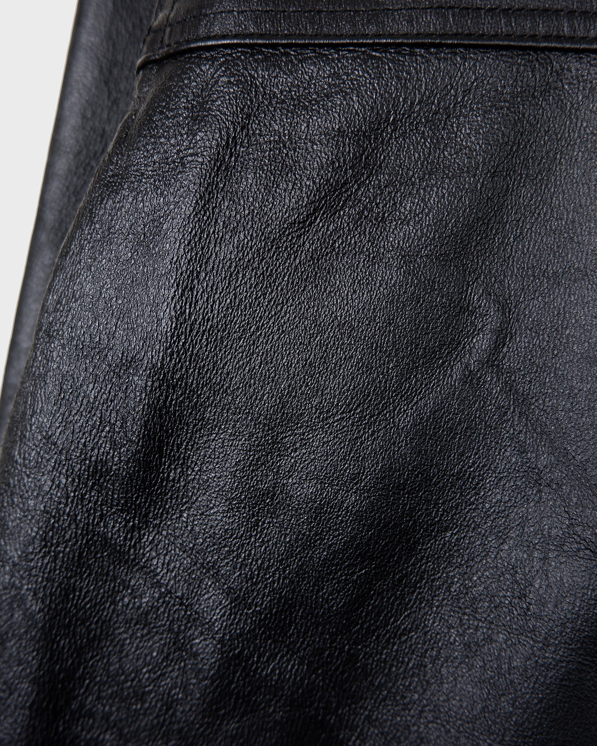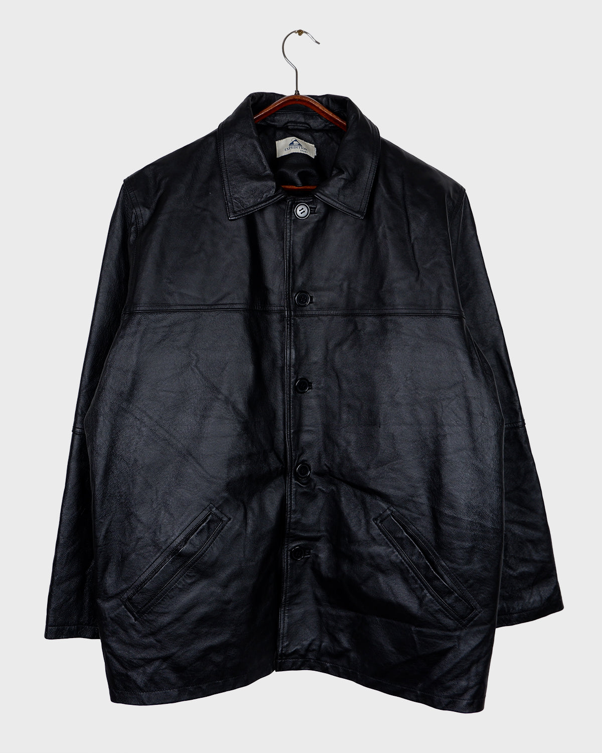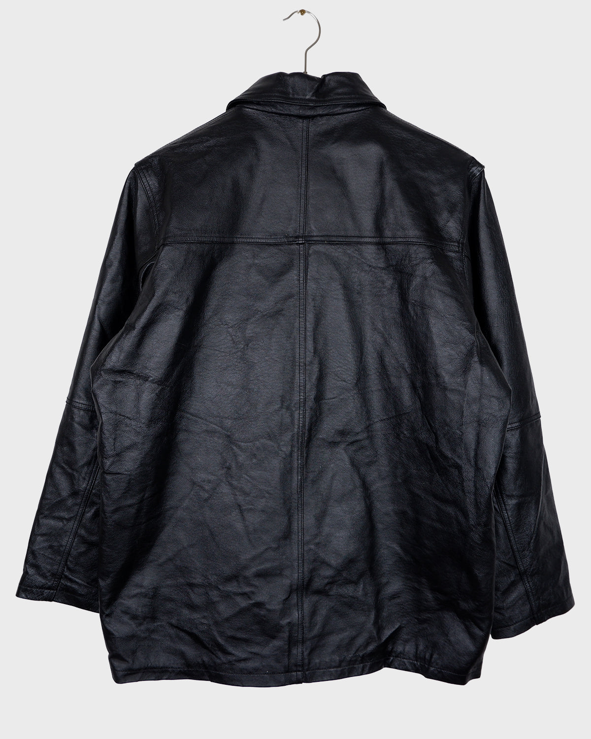 Vintage 90s black unisex leather jacket minimal button front | L–XL