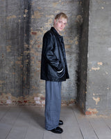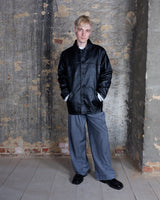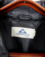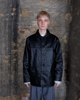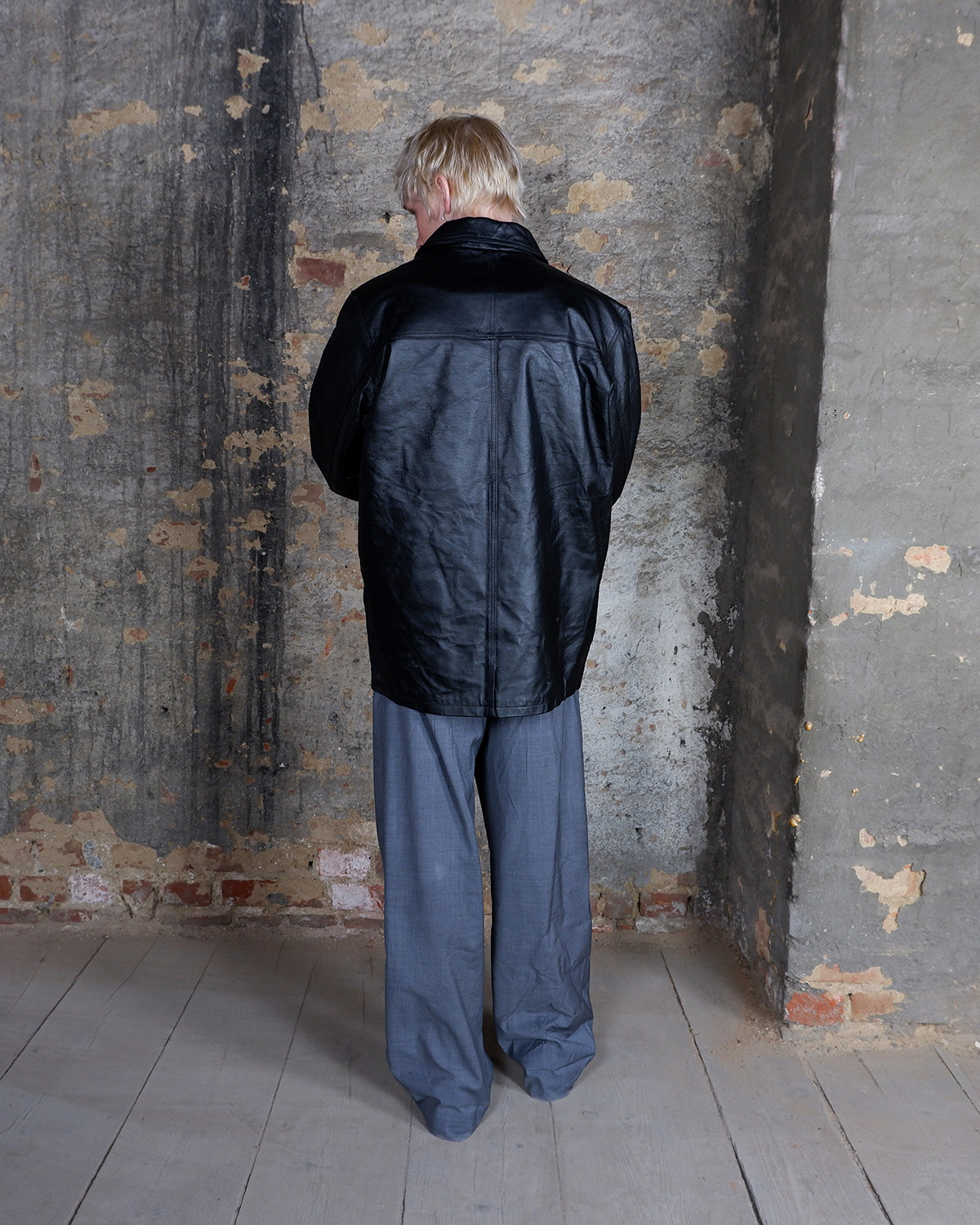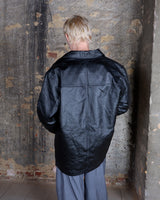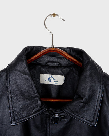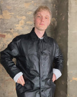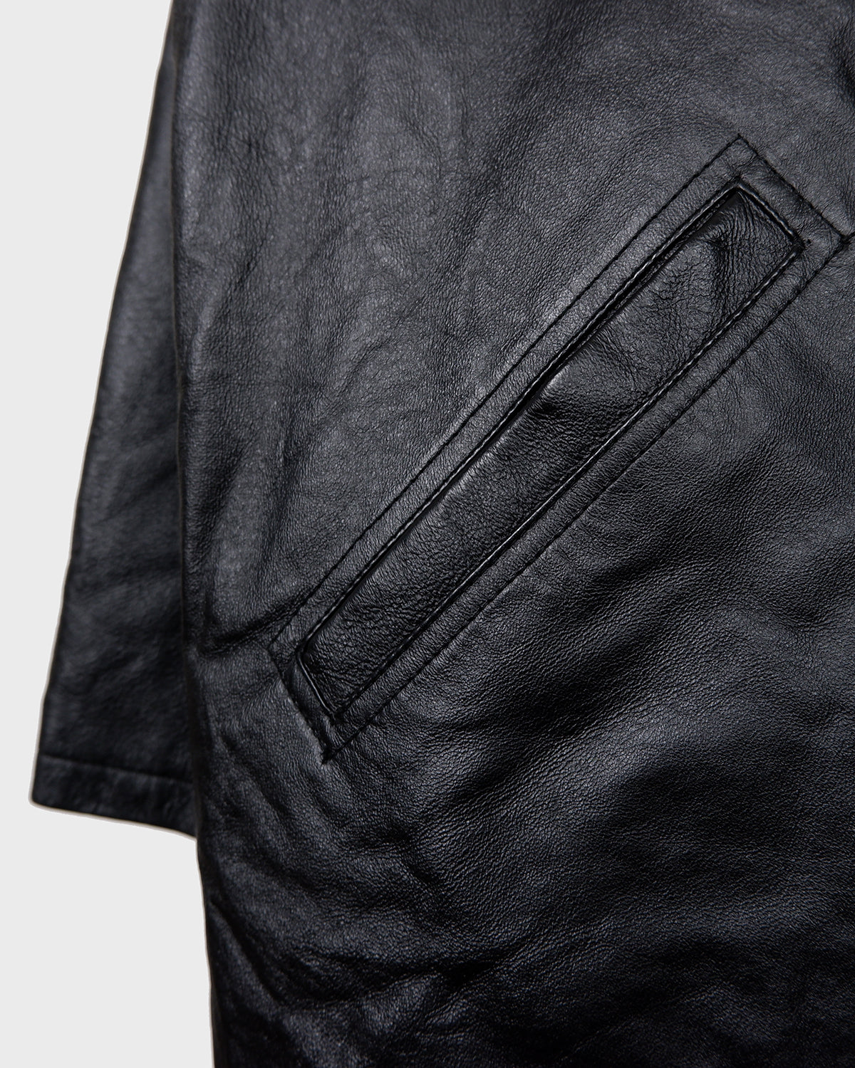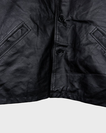 Vintage 90s black unisex leather jacket minimal button front | L–XL