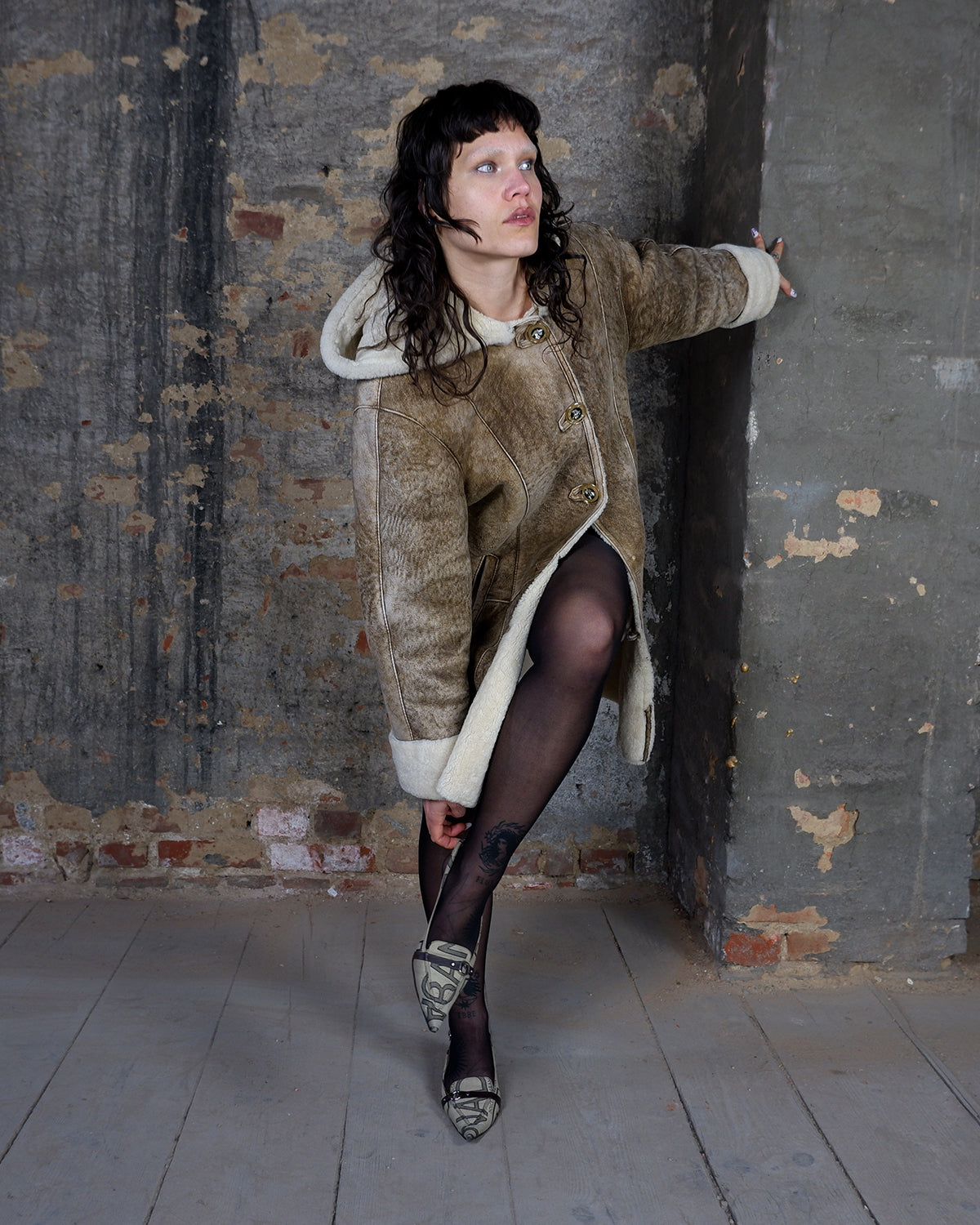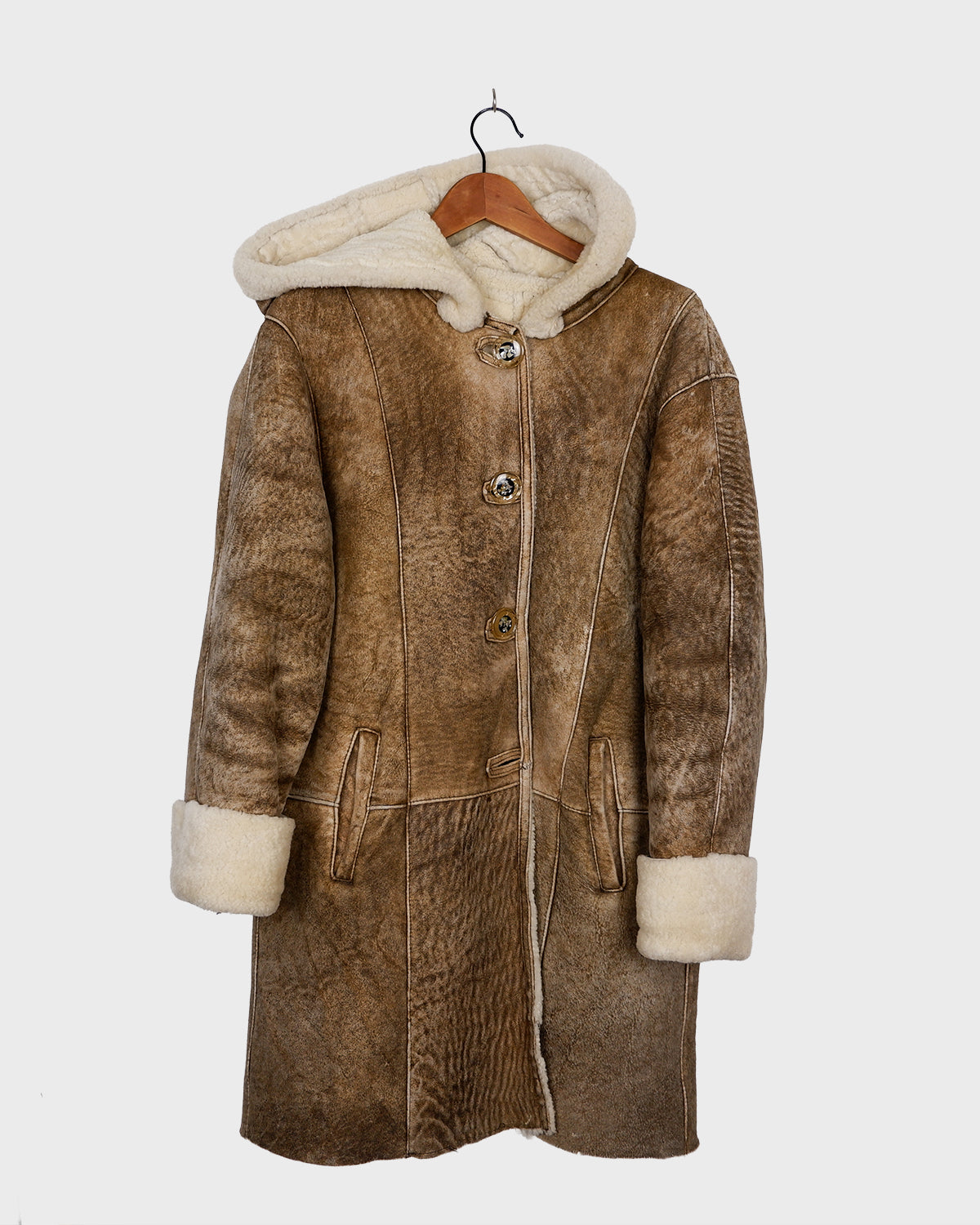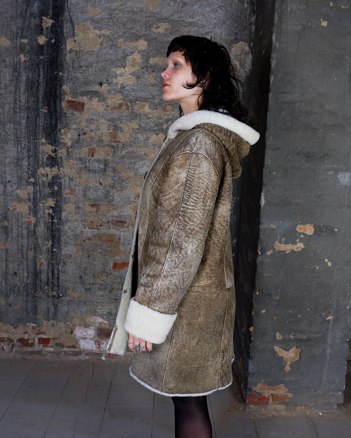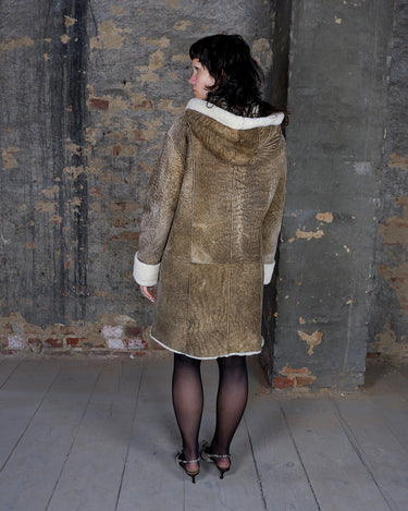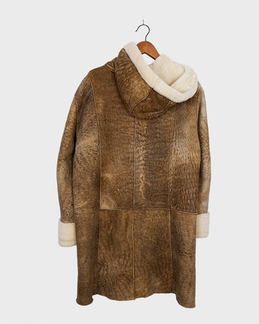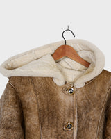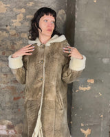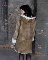 Vintage 90s brown hooded faux shearling coat (heavy) | S-L