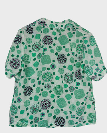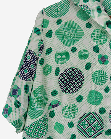 Vintage 90s green pattern silk (Crêpe Georgette) shirt | S-M